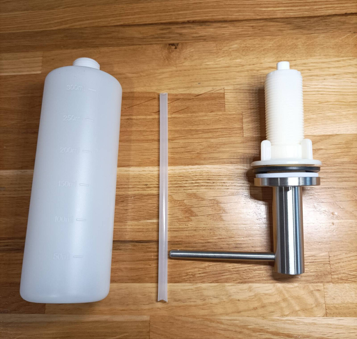 Дозатор із нержавіючої сталі. Резервуар на 300 мл для миючого засобу, заправка зверху чи знизу.