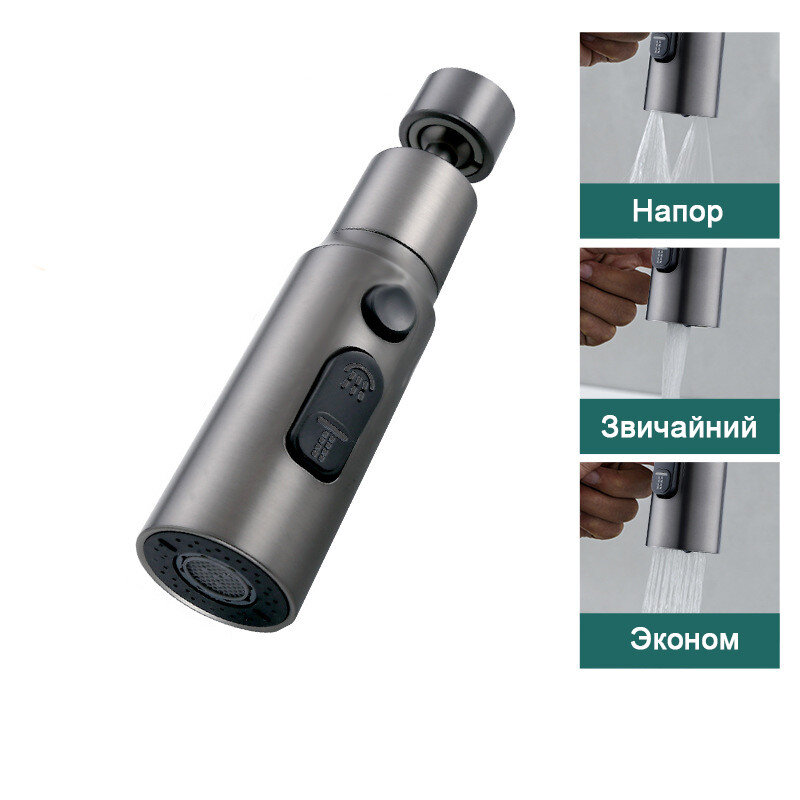 Високоякісний аератор для кухонного крана. Кріплення із латуні, аератор із товстого пластику. Поверхня матова.