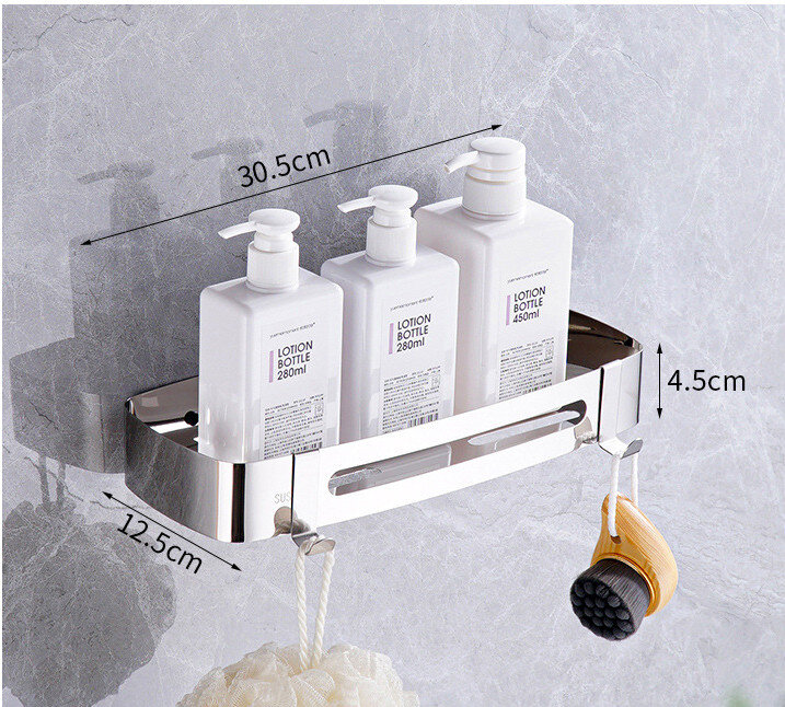Полиця для ванної виготовлена ​​з нержавіючої сталі марки 304, стійка до дії вологи, не іржавіє. Полиця має сучасний дизайн, що гармонійно поєднується з більшістю дизайнерських рішень при облаштуванні ванної кімнати.