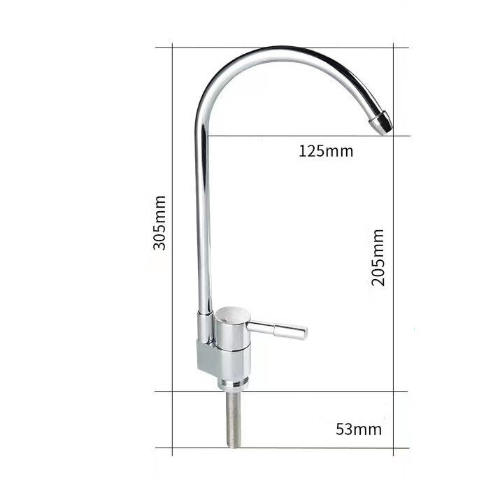 Кран у сучасному стилі для подачі води після побутового фільтру. Сумісний з більшістю фільтрів у тому числі системами зворотного осмосу. Установка на мийку чи стільницю.