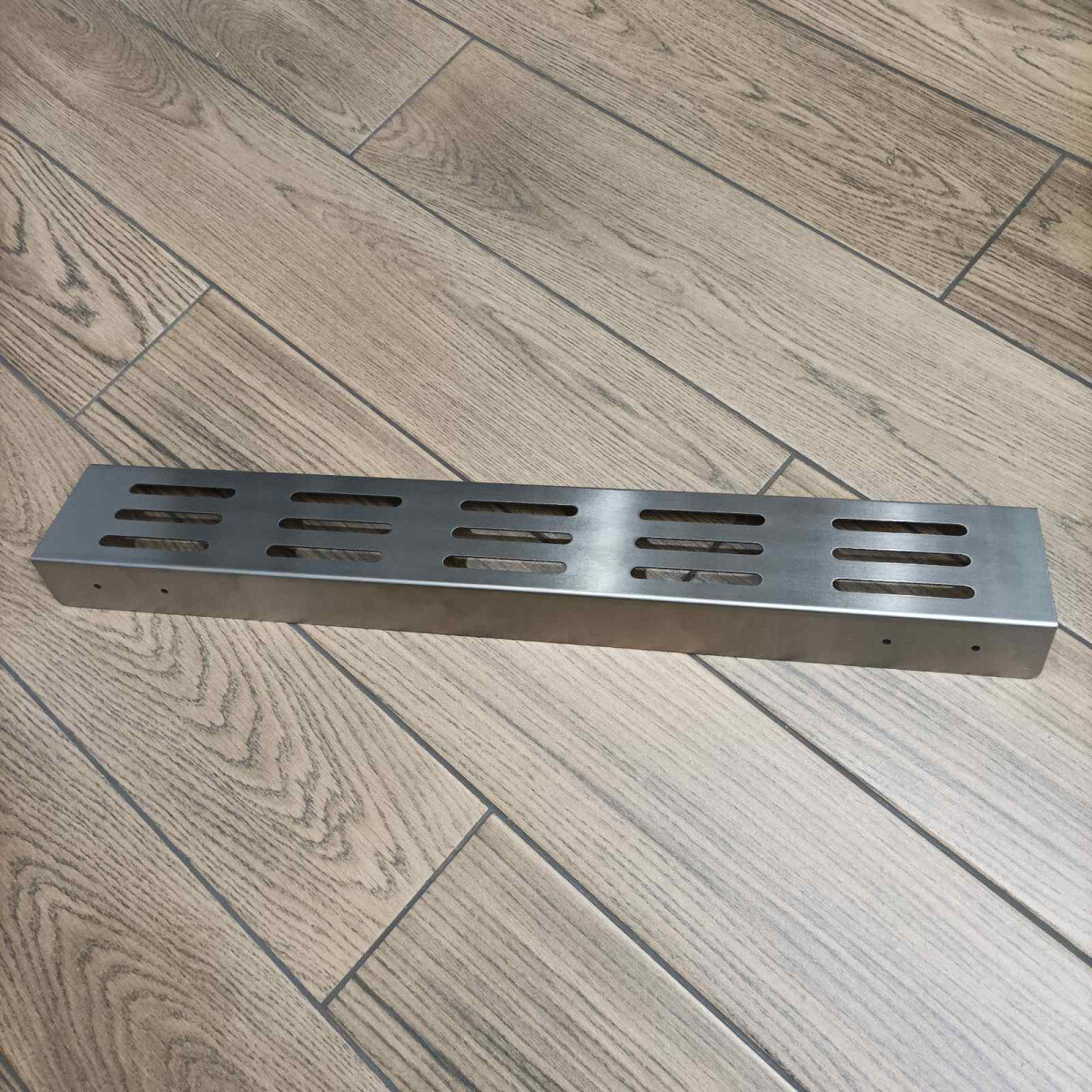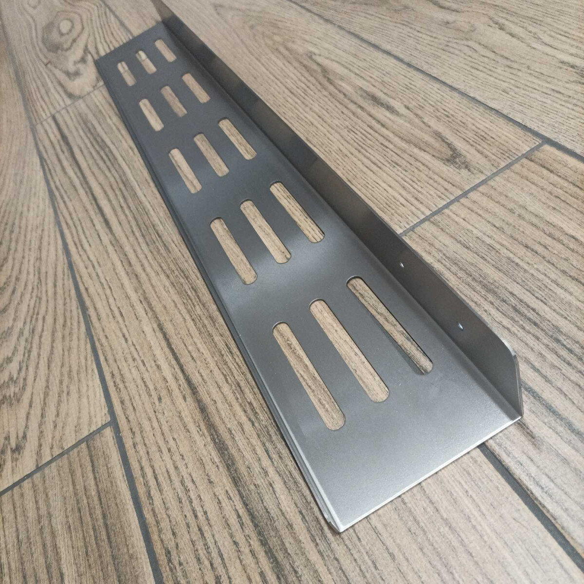 Полиця виготовлена з цільної товстостінної нержавіючої сталі (1.5 мм) — удвічі товстішої, ніж у стандартних моделей. Вона легко витримує навантаження та щоденне використання без втрати форми чи зовнішнього вигляду. Матовий фініш надає поверхні глибини й стриманого блиску, не залишаючи слідів пальців.