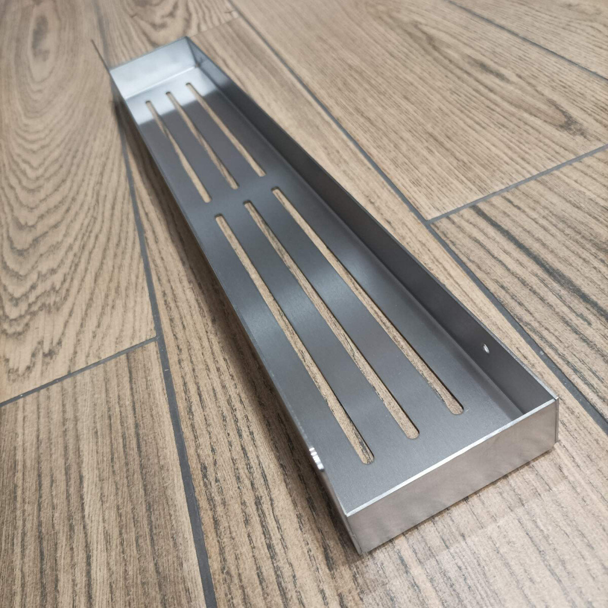 - Перфороване дно — подовжні прорізи дозволяють воді швидко стікати, запобігаючи накопиченню вологи та забруднень.