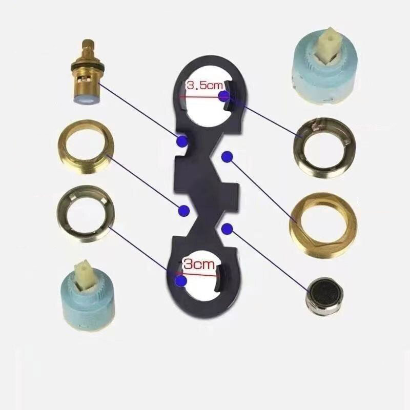Універсальний інструмент-ключ для швидкої заміни або зняття сантехнічних деталей у ванній кімнаті. Легкий і компактний, він створений для надійного доступу кутів і вузьких місць, де традиційні ключі не допомагають.