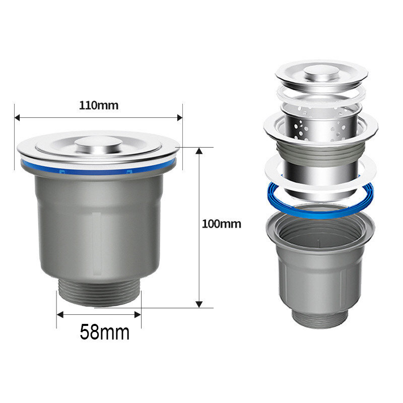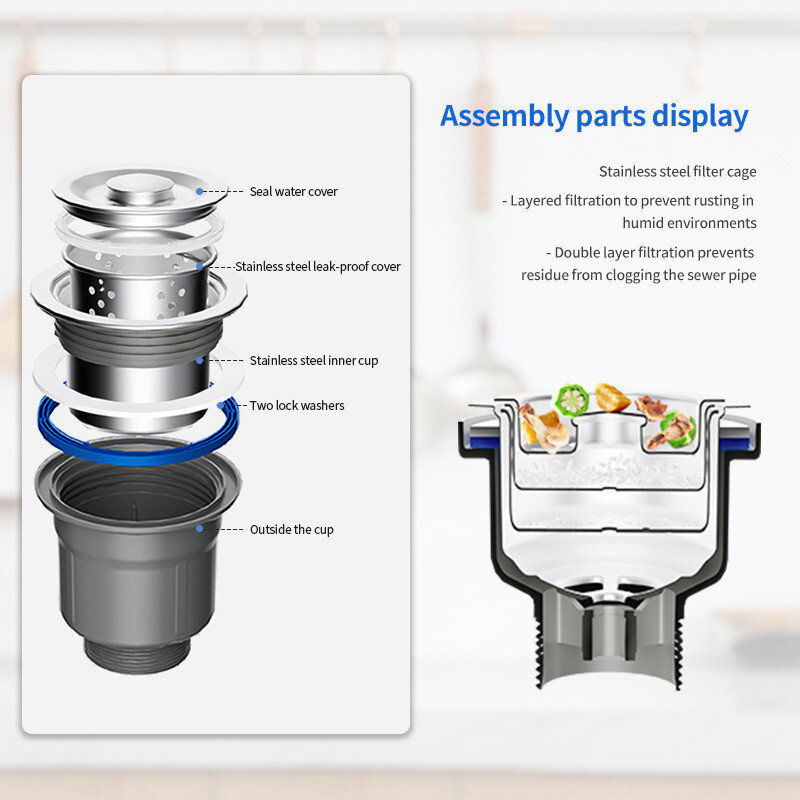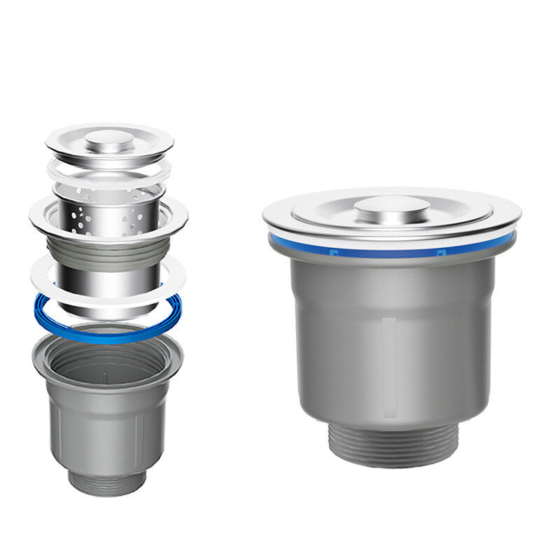 Донний клапан для мийки (випуск) обладнаний знімним кошиком для збирання великих частинок та герметичною кришкою, виготовлений з нержавіючої сталі. Це зручне сучасне рішення для кухонного миття, всі залишки їжі, що потрапила в мийку, потрапляють в кошик уловлювач, який легко витягується для очищення.
