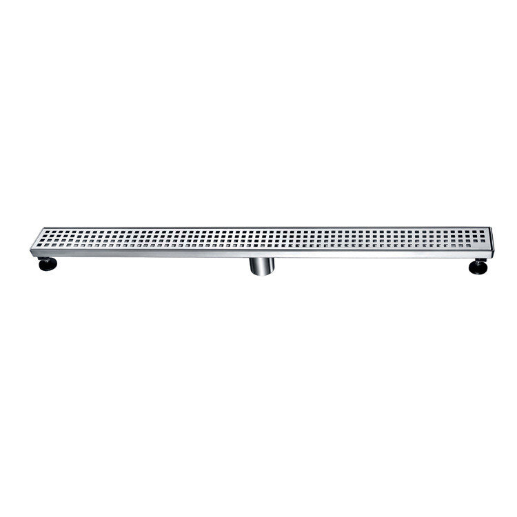 Лінійний трап преміальної якості з товстої нержавіючої сталі SUS304. Конструкція жорстка та стабільна, розрахована на довгу експлуатацію. Обробка поверхні: зовні — полірований мат, всередині — глибокий мат. Є заводський ухил до зливу, тому вода не застоюється.