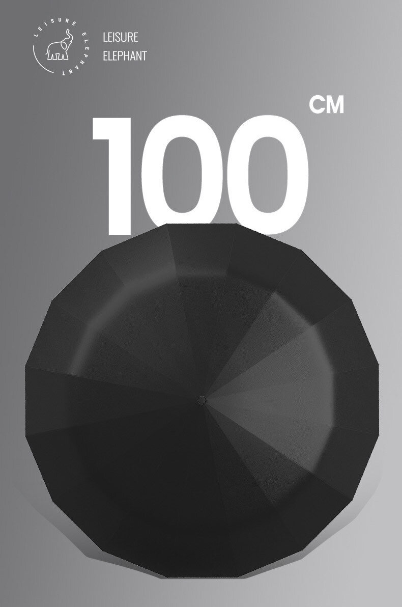 Надійна складна парасолька LEISURE ELEPHANT моделі LE01601 у класичному чорному кольорі. Механізм ручного відкриття/закриття простий та витривалий, а посилена конструкція на 16 ребер допомагає куполу тримати форму й краще протистояти поривам вітру. Формат трьох складань робить парасольку компактною — зручно носити щодня у сумці або рюкзаку.