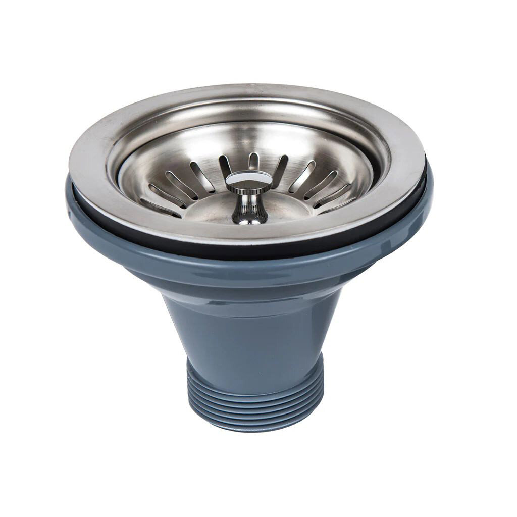 Донний клапан для мийки (випуск) обладнаний сіткою для збирання великих частинок та герметичною кришкою, виготовлений з нержавіючої сталі.