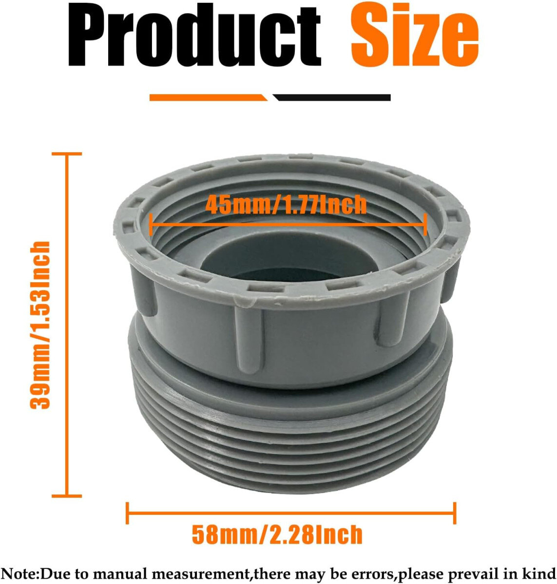 Перехідник призначений для підключення елементів зливної системи кухонної мийки з різними діаметрами. Дає змогу з'єднати вузол із внутрішнім розміром 45 мм із зовнішнім підключенням 58 мм.