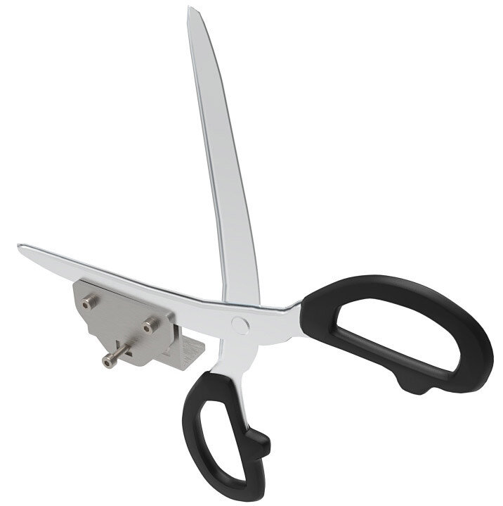 Підходить для більшості точилок, оснащених двома затискними губками. Перед покупкою обов’язково врахуйте особливості саме вашої точилки: для правильного заточування ножиць необхідно виставити певний робочий кут. Переконайтеся, що діапазон регулювання вашої системи дозволяє це зробити.