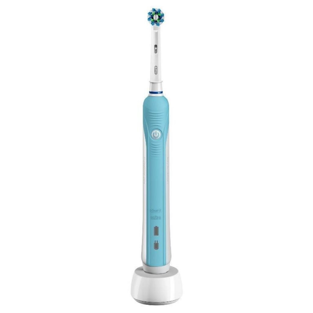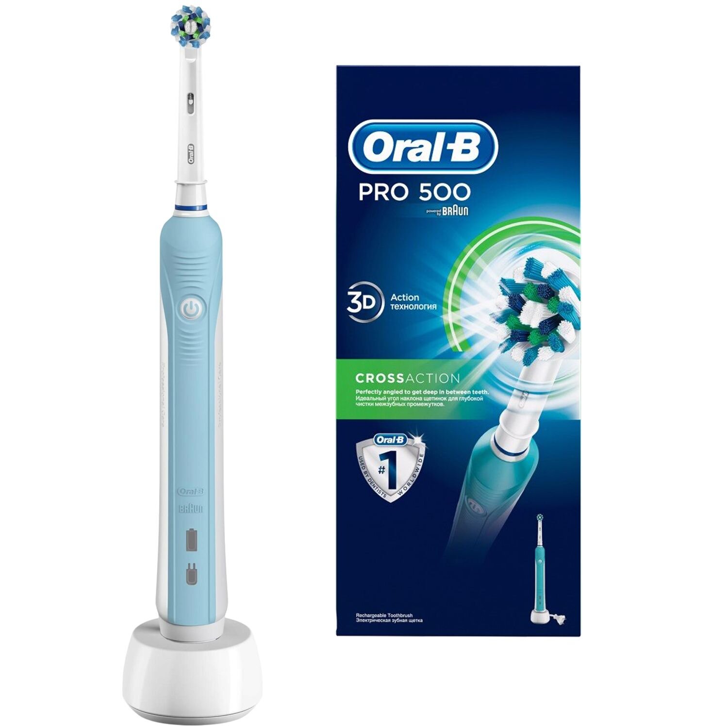Популярная бюджетная зубная щетка Oral-B PRO 500 D16 CrossAction Blue. В данной серии реализована функция 3D, позволяет головке делать не только оборотно-вращательные движения, но и пульсации, что улучшает чистку межзубных промежутков.