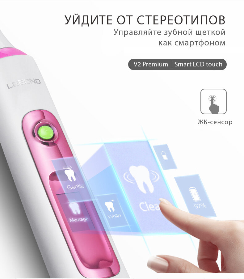 Зубна щітка Lebond V2 технічно бездоганне виріб - звукові вібрації високої амплітуди, потужний акумулятор, зручне управління і рекомендації стоматологів до використання. Дана модель також завоювала увагу користувачів завдяки отриманій премії Red Star Design Award за кращий дизайн та інноваційність продукту.