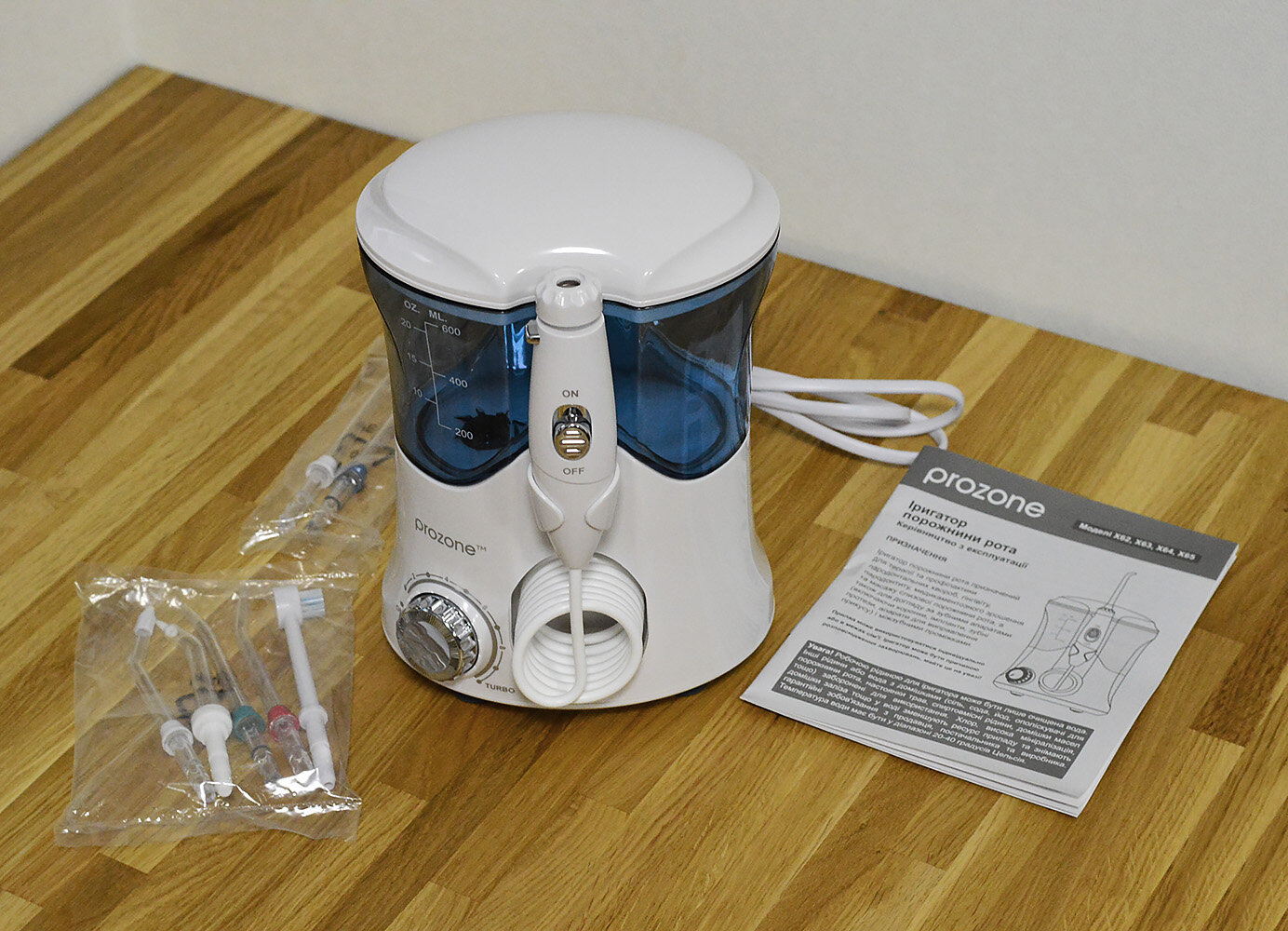 Гарантия на ProZone X63 Evolution — 12 месяців. В комплекті з іригатором йде украинська інструкція, розроблена стоматологами та гарантійний талон.