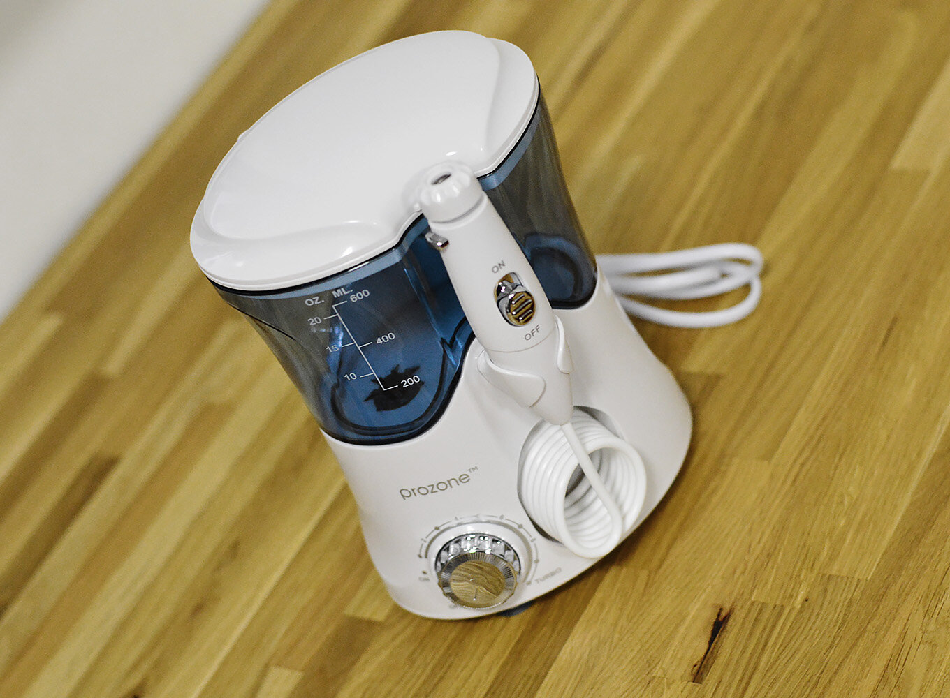 4. Система подачі води ON/OFF slider button. Це надійна конструкція з кнопкою слайдером, яку непотрібно утримувати під час процедури іригації ротової порожнини. В іригаторі використовується спеціальний жорсткий шланг, який гарантує передачу необхідного рівня тиску до змінної насадки.
