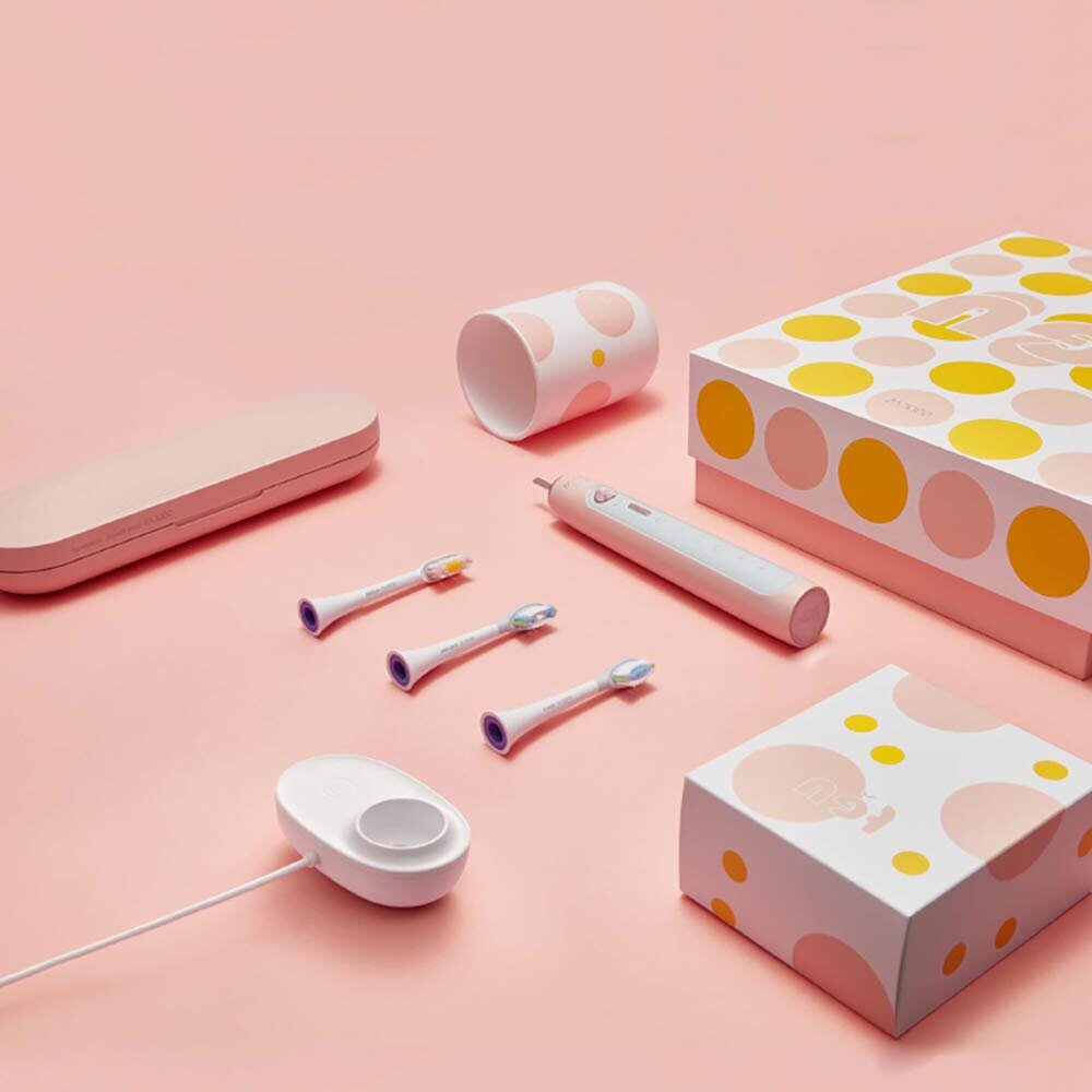 | Комплектация | Зубная щетка, 3 сменные насадки, дорожный бокс, пластиковый стакан, станция зарядки |