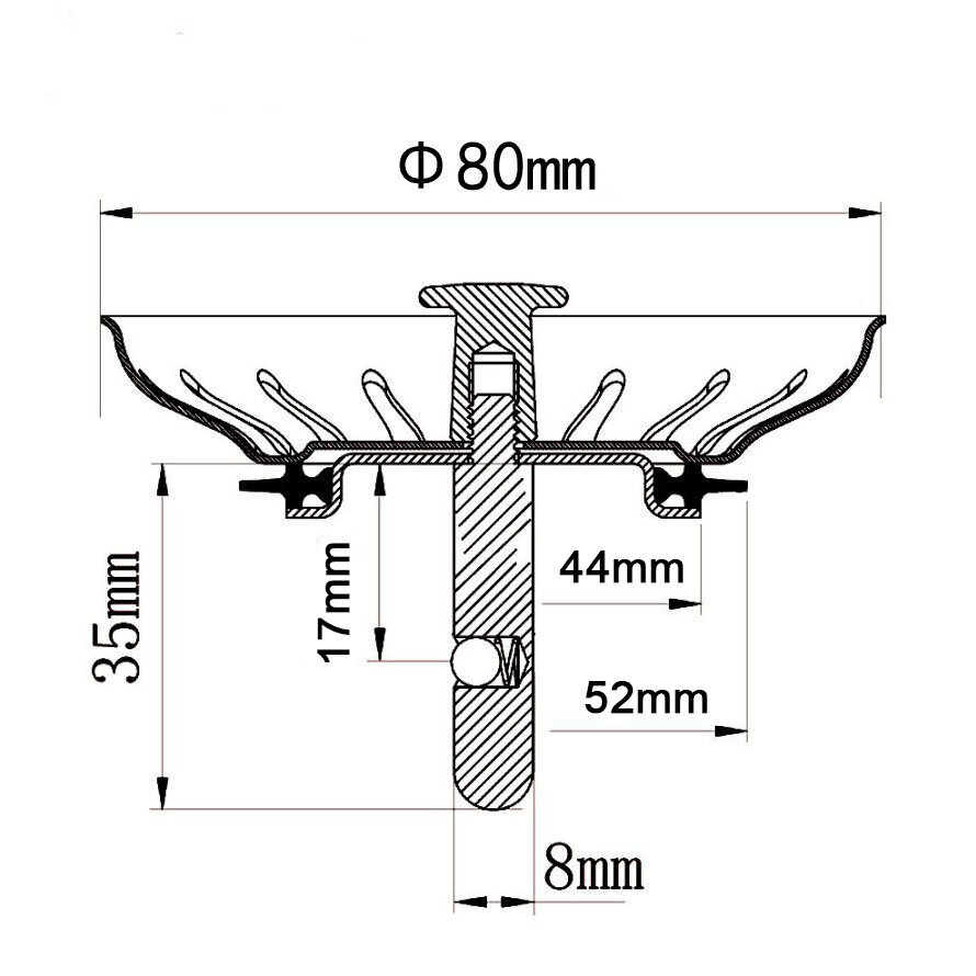 Перед покупкою рекомендується виміряти діаметр зливного отвору у мийці. Він повинен знаходитись у діапазоні від 81 до 85 мм. Також перевірте отвір у сифоні: діаметр штифта клапана становить 8 мм, і отвір має відповідати цьому розміру або бути трохи меншим. Це стандартний розмір для більшості сифонів, але трапляються винятки, особливо серед дешевих моделей.