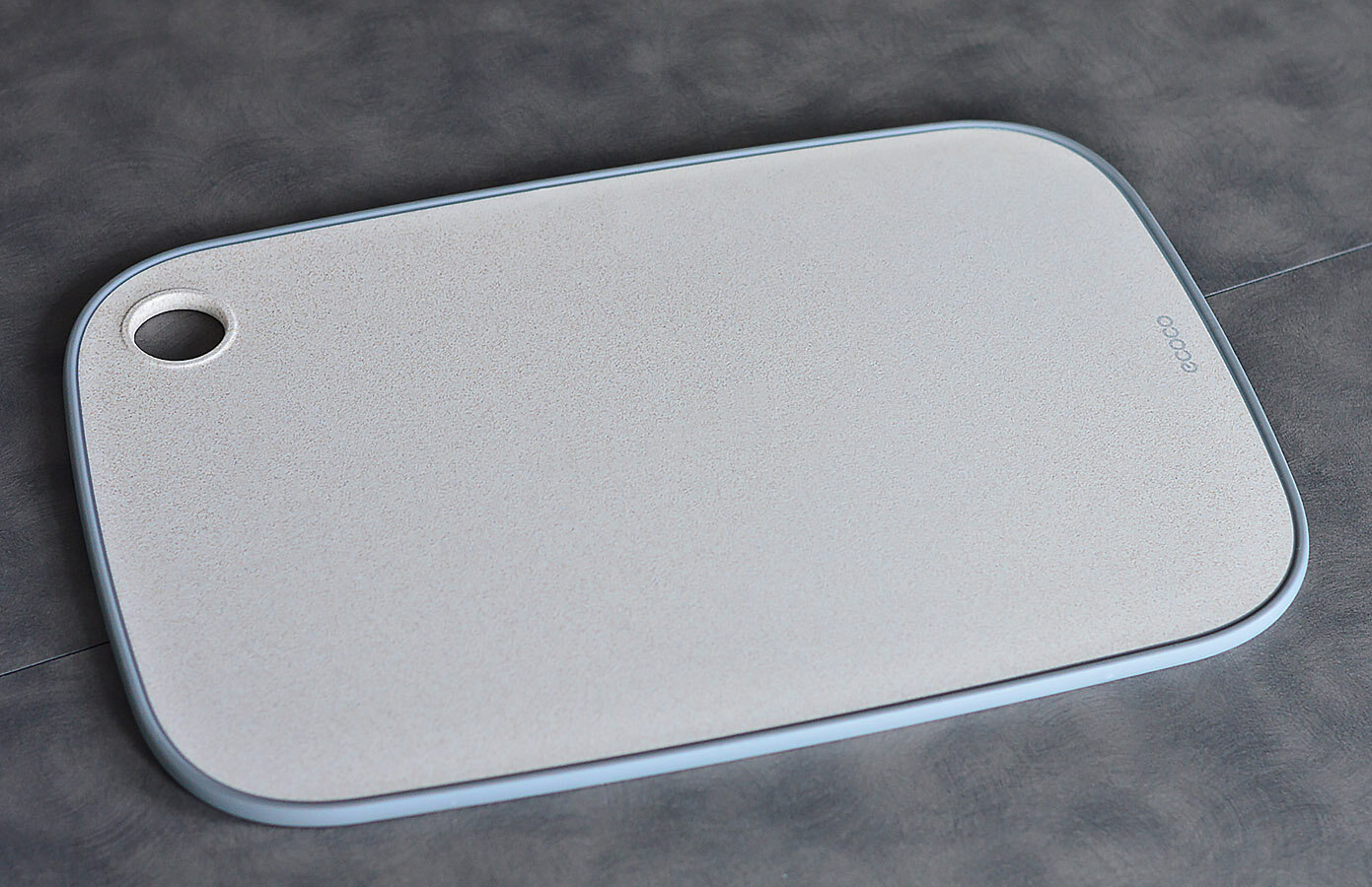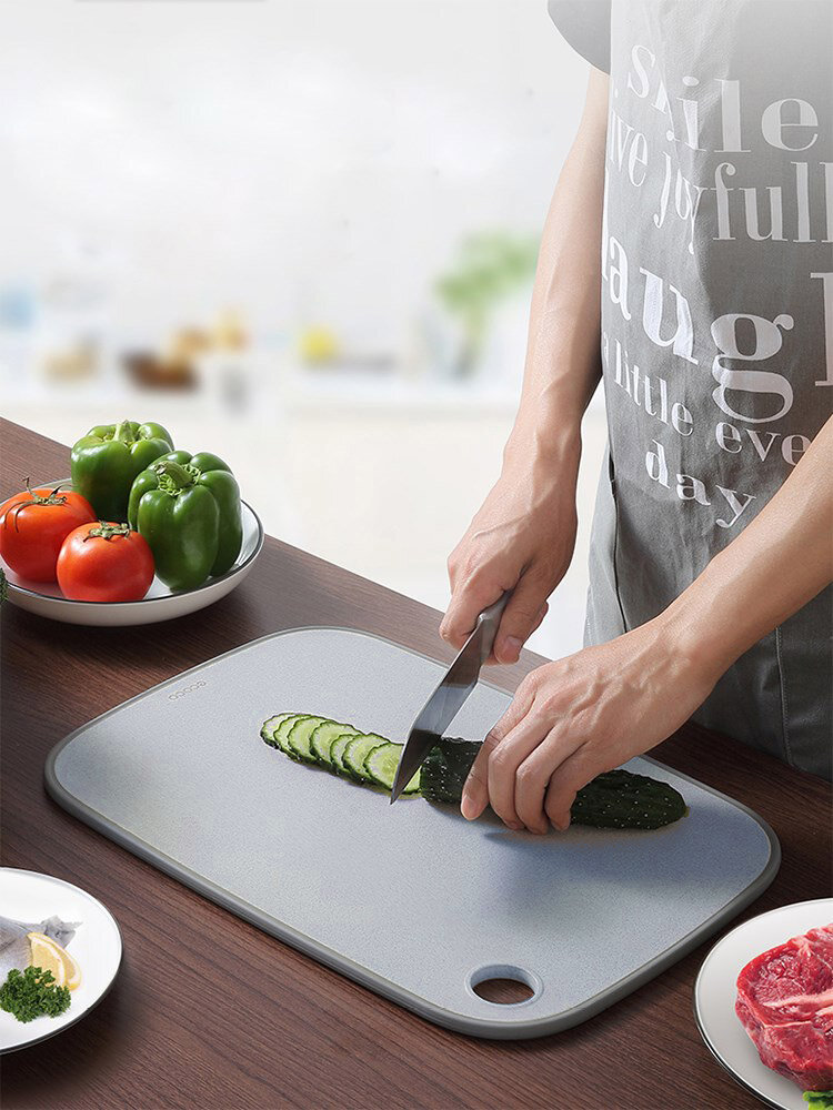 Обробна дошка ECOCO має гумовий антиковзкий кант (термопластична гума), який також утримує продукти та рідину на дошці (не дає їй витікати). Покриття дошки антибактеріальне, міцне, але не тупить ножі.