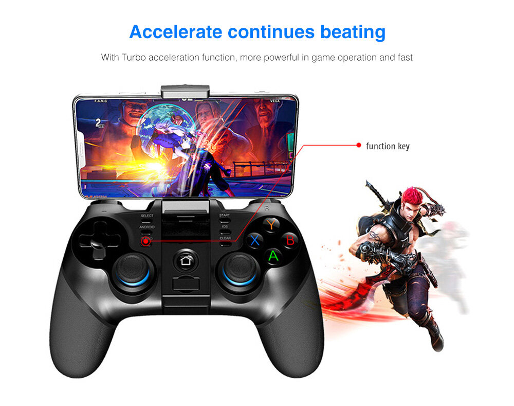 Геймпад має вбудований утримувач для смартфонів. Він регулюється за довжиною (телескопічний) та підходить для більшості моделей смартфонів.