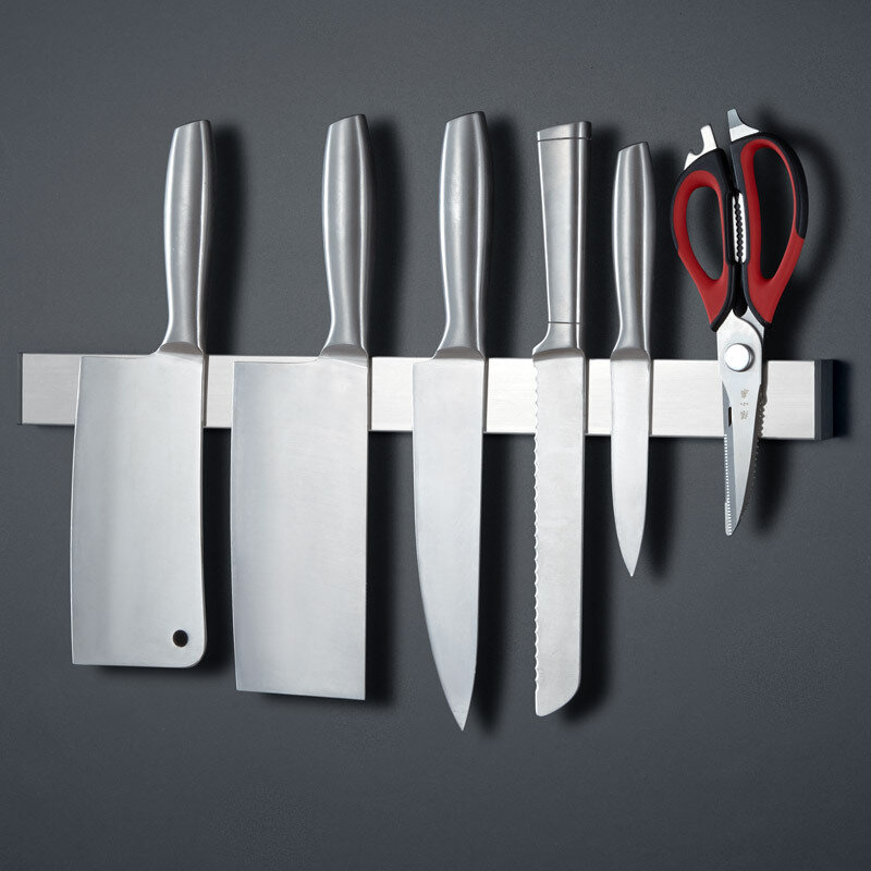 Магнітна планка Fumei – це зручний спосіб зберігання ножів чи інших металевих кухонних інструментів. Виконана з високоякісної нержавіючої сталі із сильними магнітами на всю довжину. Не впливає на якість ножів і не псує їх зовнішній вигляд, стійка до корозії та дії вологи.