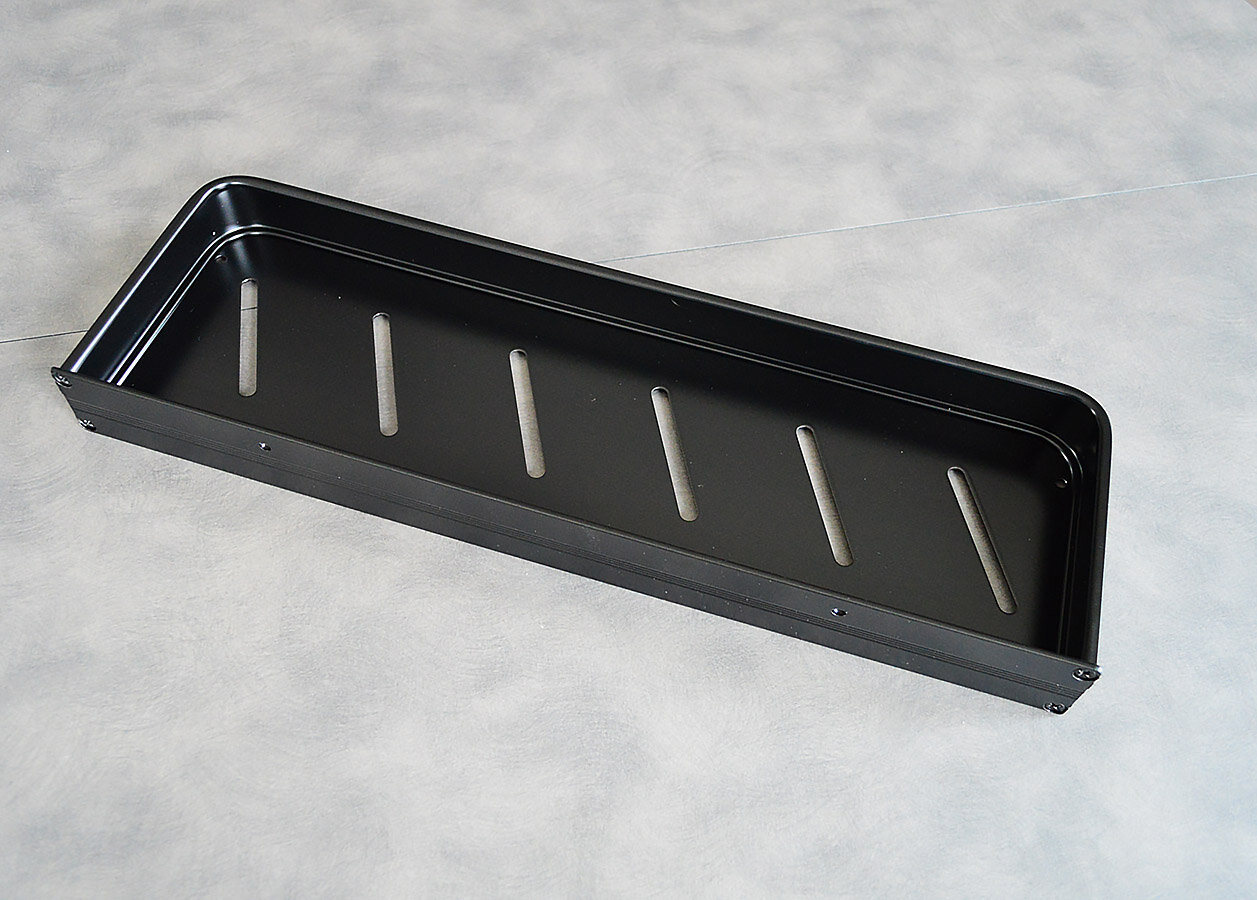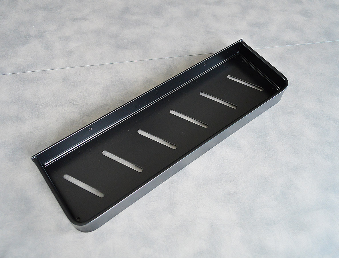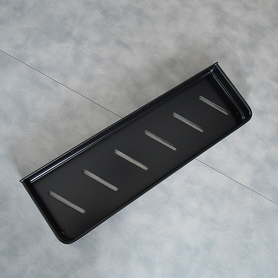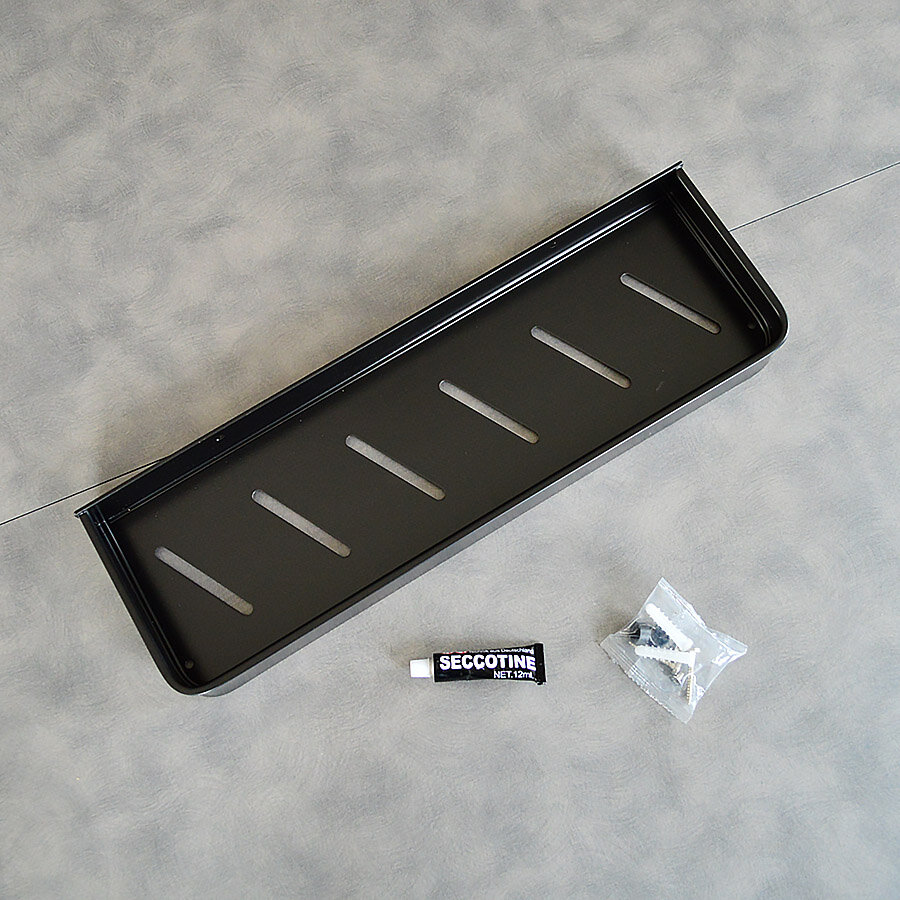 Полка для ванної виготовлена ​​з алюмінію, стійка до впливу вологи, не іржавіє. Полка має сучасний дизайн (модерн, лофт), гармонійно поєднується з більшістю дизайнерських рішень при облаштуванні ванної кімнати. Покриття - надміцний грунт + чорна фарба.