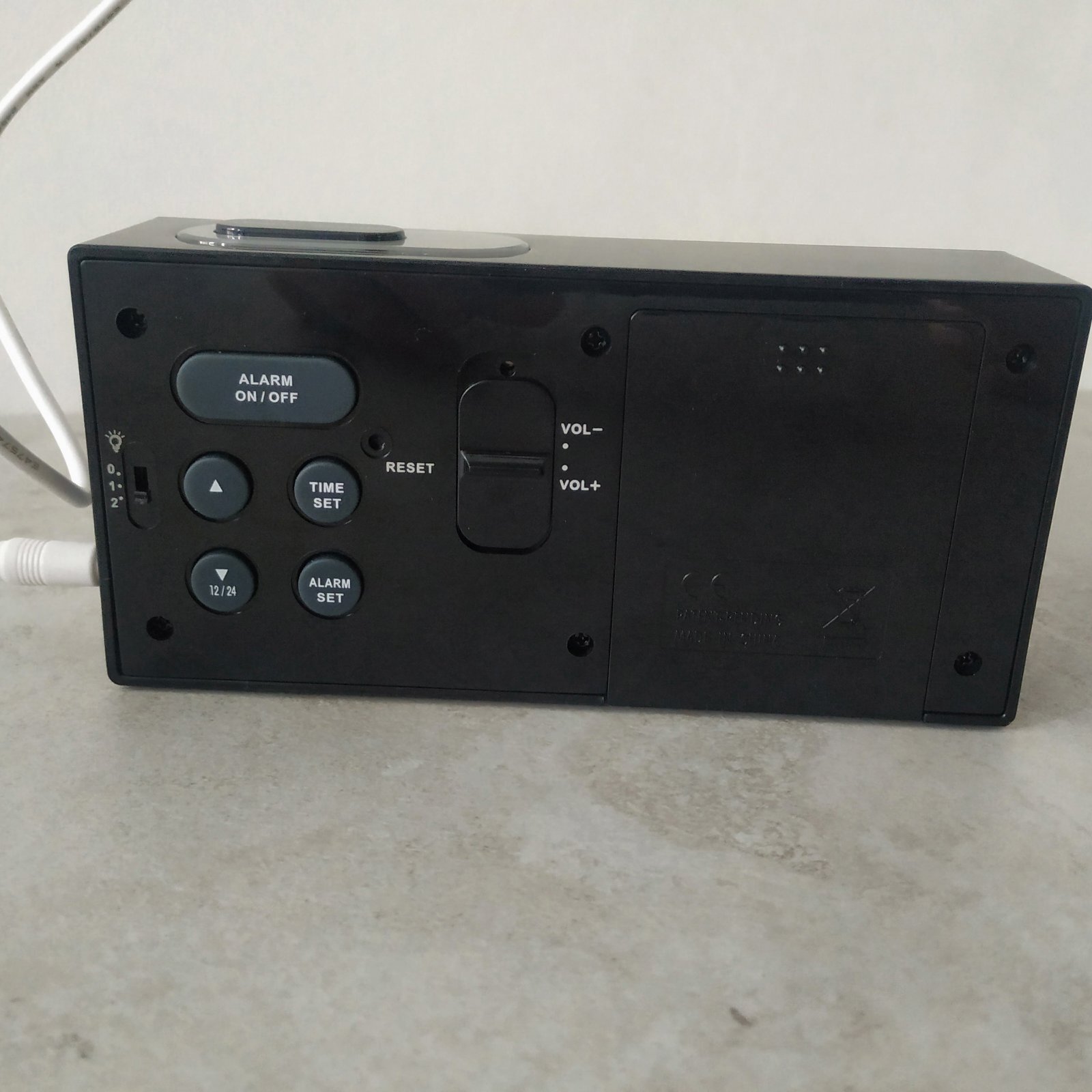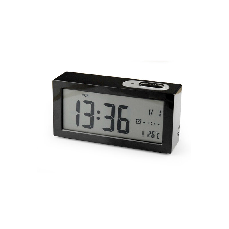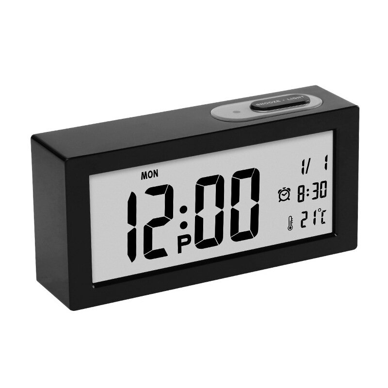 - Годинник показує час, дату, температуру, день тижня, функція нічника, є функція повтору сигналу